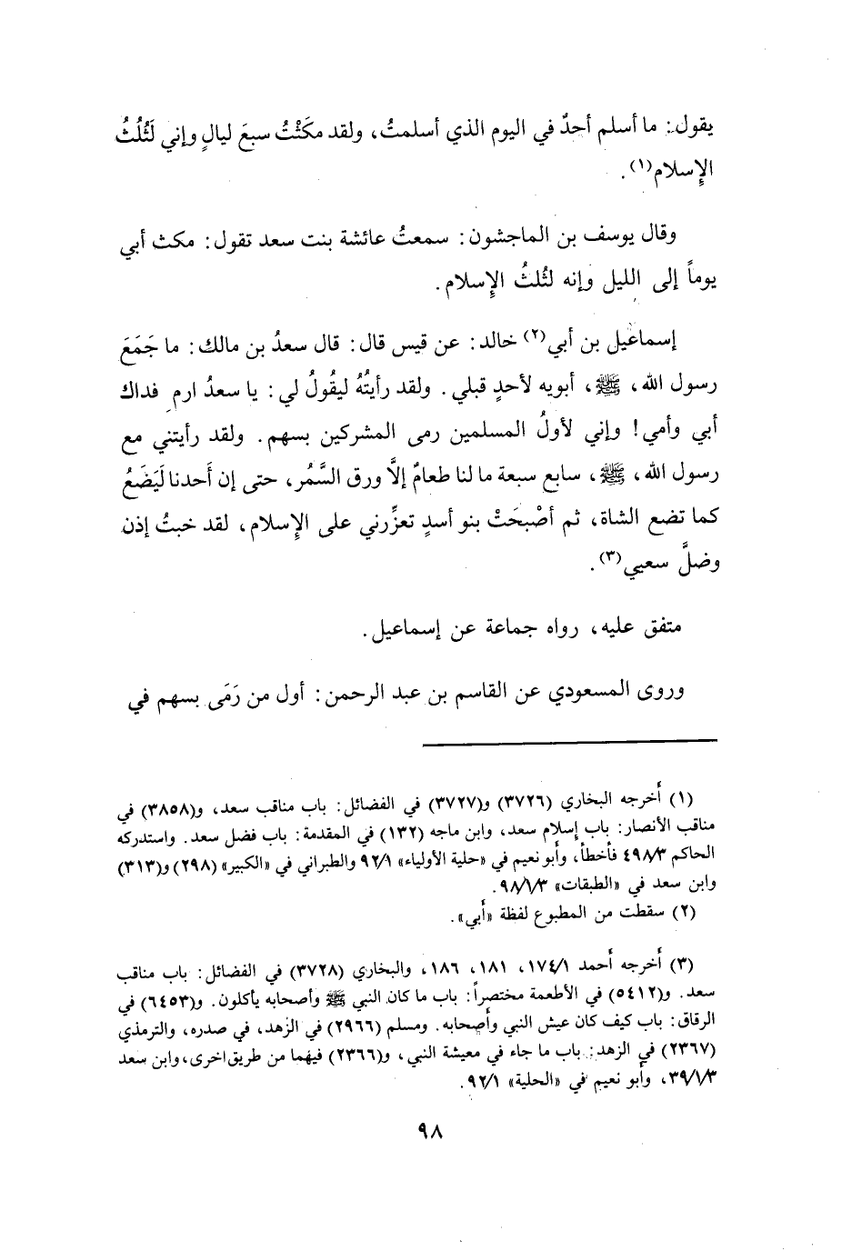 (1) أخرجه البخاري (3726) و (3727) في الفضائل: باب مناقب سعد، و (3858) في مناقب الانصار: باب إسلام سعد، وابن ماجه (132) في المقدمة: باب فضل سعد.