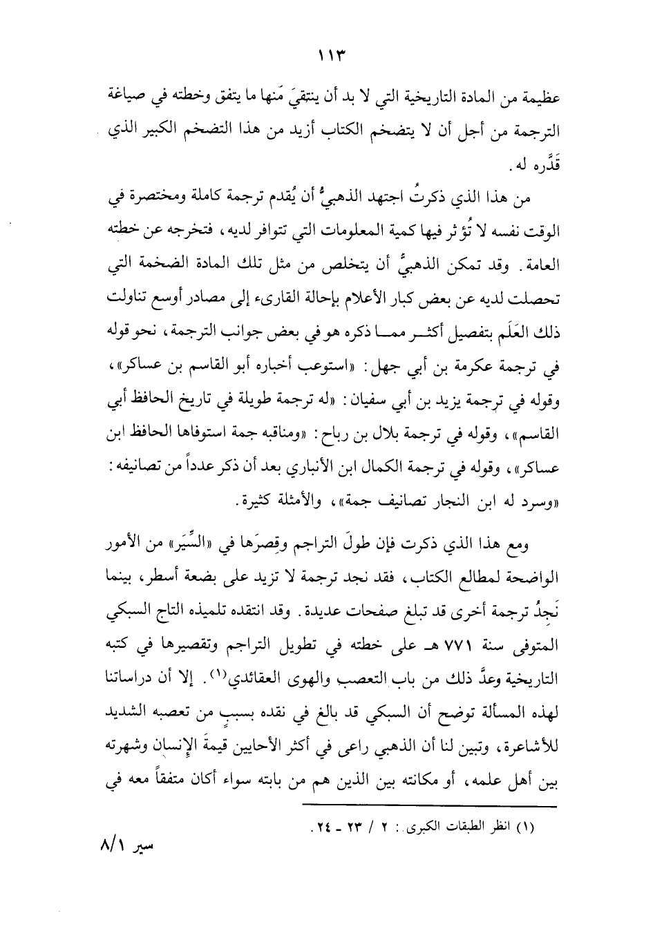 من هذا الذي ذكرت اجتهد الذهبي أن يقدم ترجمة كاملة ومختصرة في الوقت نفسه لا تؤثر فيها كمية المعلومات التي تتوافر لديه، فتخرجه عن خطته العامة.