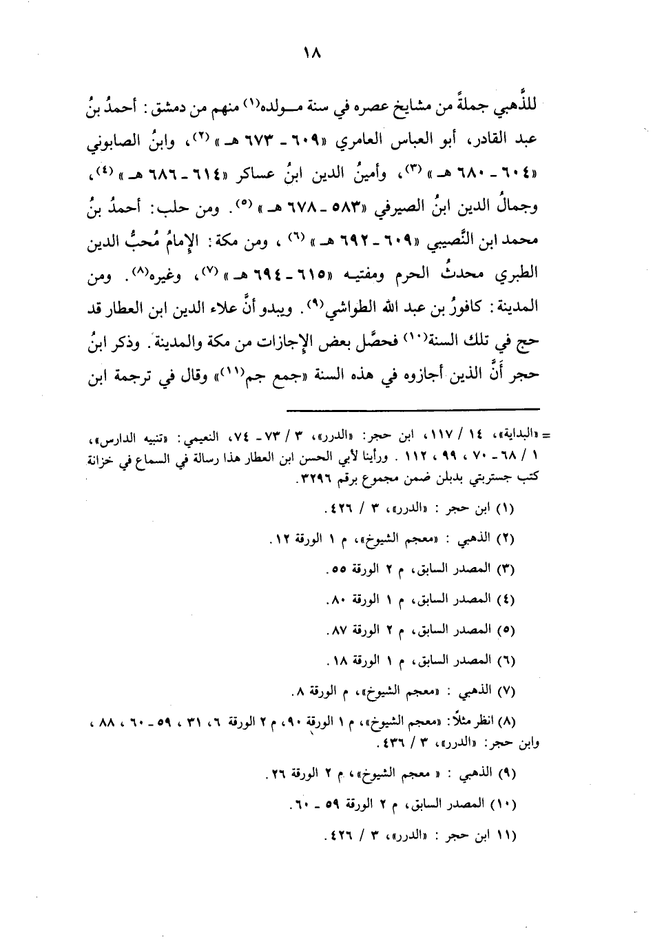 (8) انظر مثلا: " معجم الشيوخ "، م 1 الورقة 90، م 2 الورقة 6، 31، 60 59، 88، وابن حجر: " الدرر "، 3 / 436.