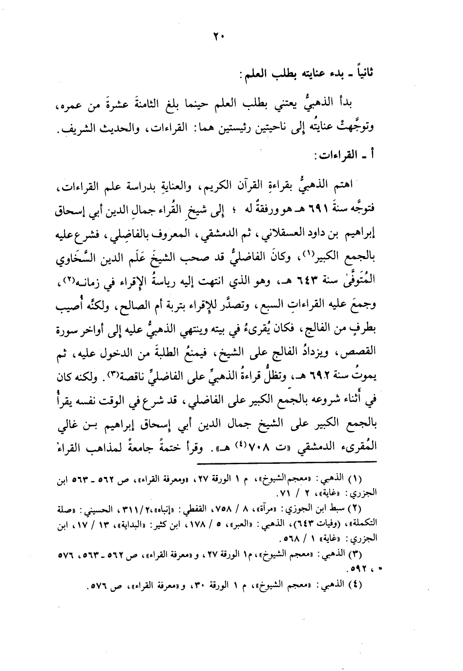 (4) الذهبي: " معجم الشيوخ "، م 1 الورقة 30، و " معرفة القراء "، ص 576.