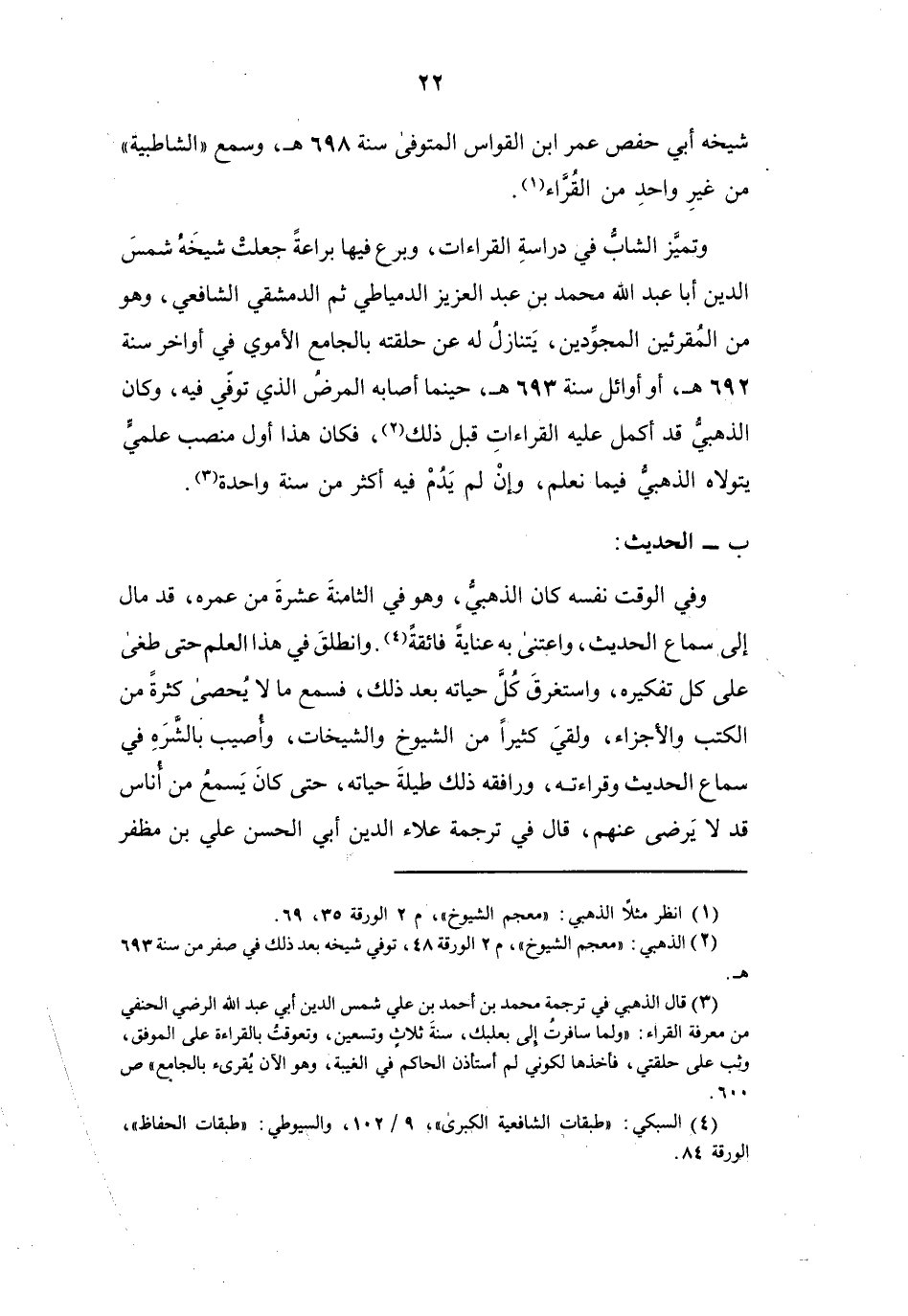 (1) انظر مثلا الذهبي: " معجم الشيوخ "، م 2 الورقة 35، 69.