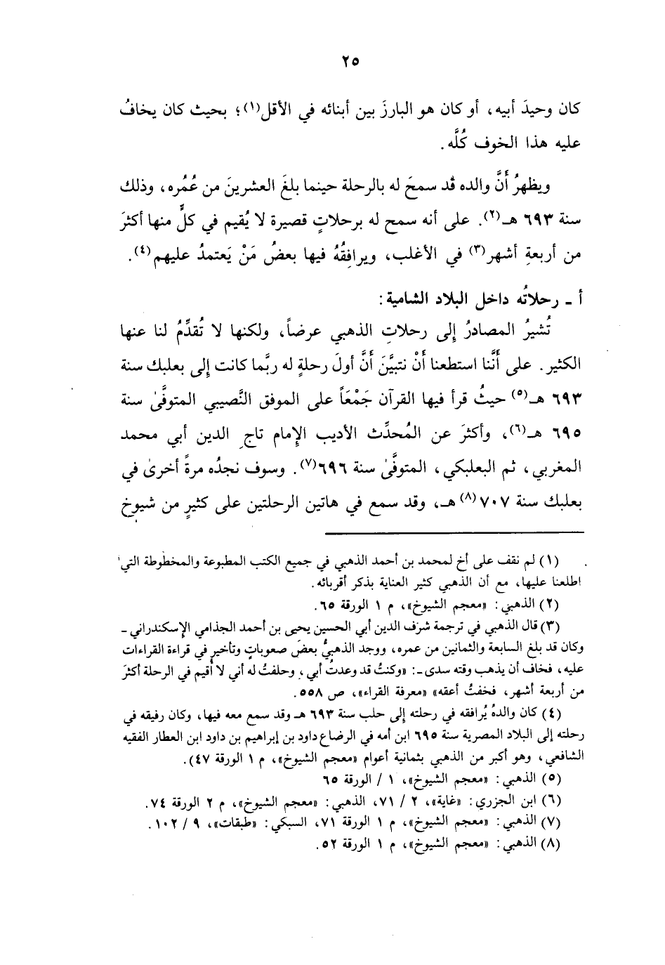 (8) الذهبي: " معجم الشيوخ "، م 1 الورقة 52.