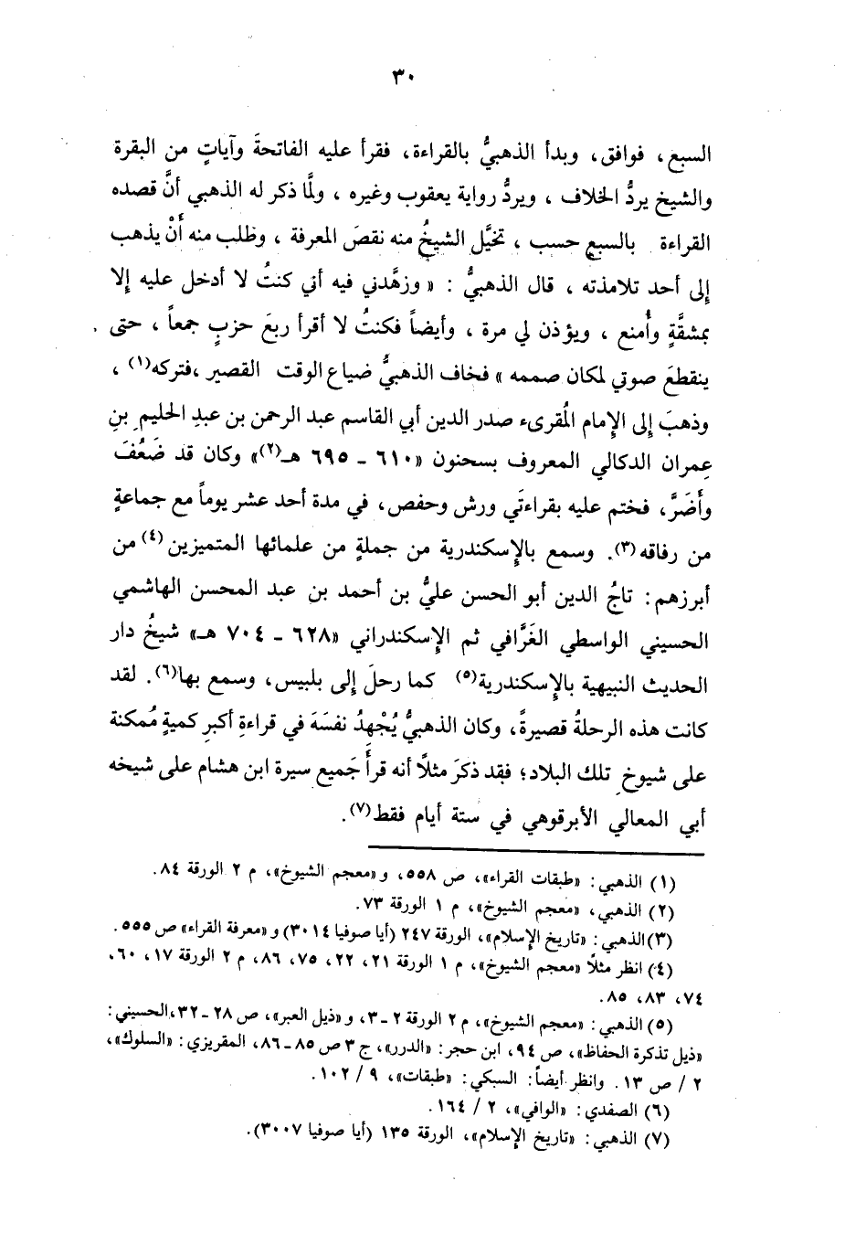 (7) الذهبي: " تاريخ الإسلام "، الورقة 135 (أيا صوفيا 3007) .