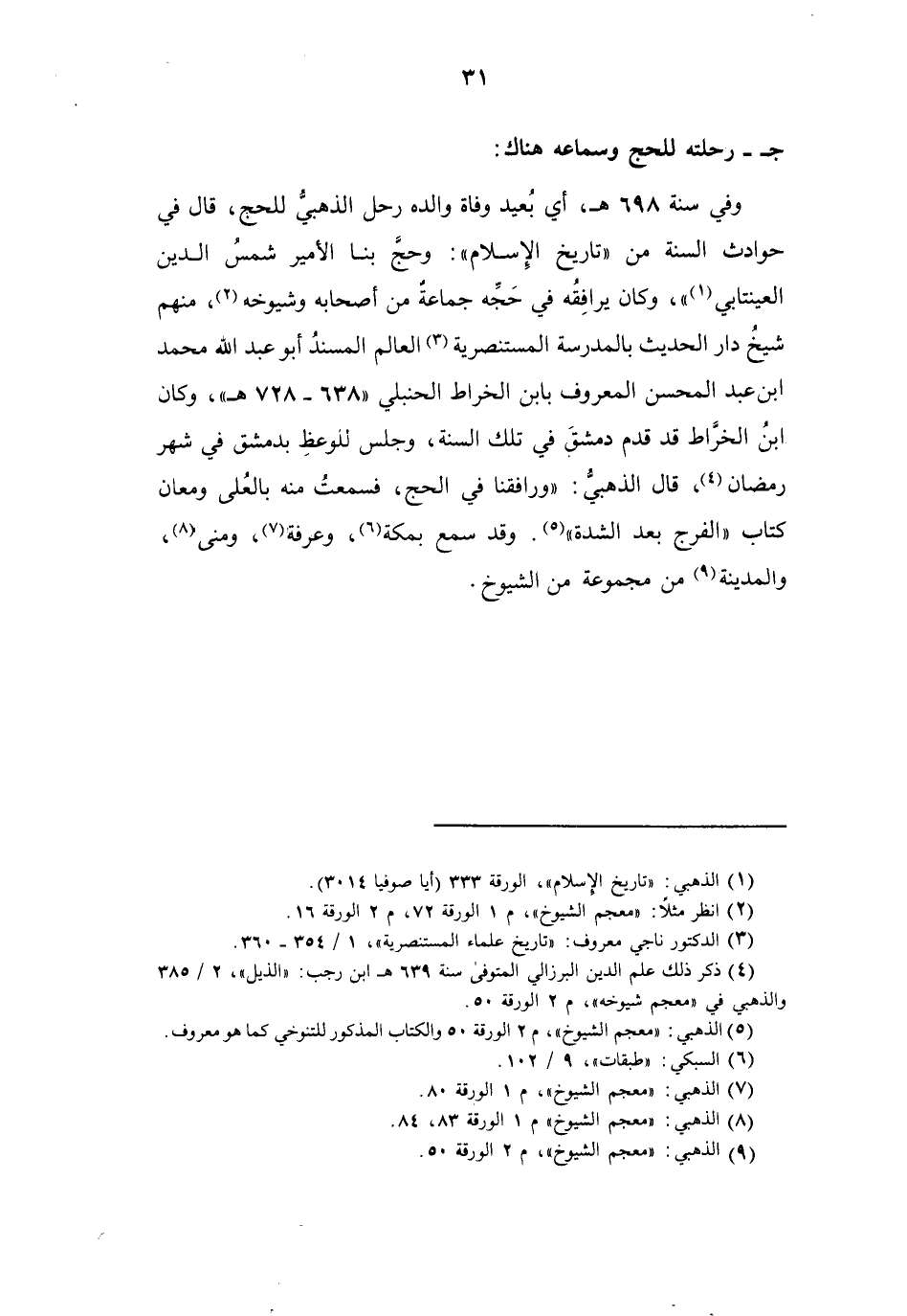 (9) الذهبي: " معجم الشيوخ "، م 2 الورقة 50.