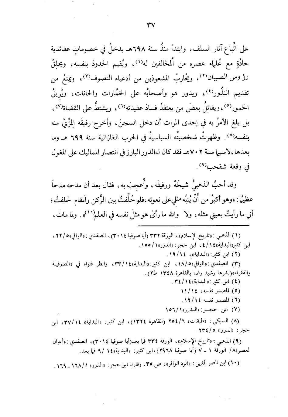 (9) الذهبي: " تاريخ الإسلام "، الورقة 334 فما بعد (أيا صوفيا 3014) ، الصفدي: " أعيان العصر " 8 / الورقة 7 1 (أيا صوفيا 2968) ، ابن كثير: " البداية " 14 / 9 فما بعد.