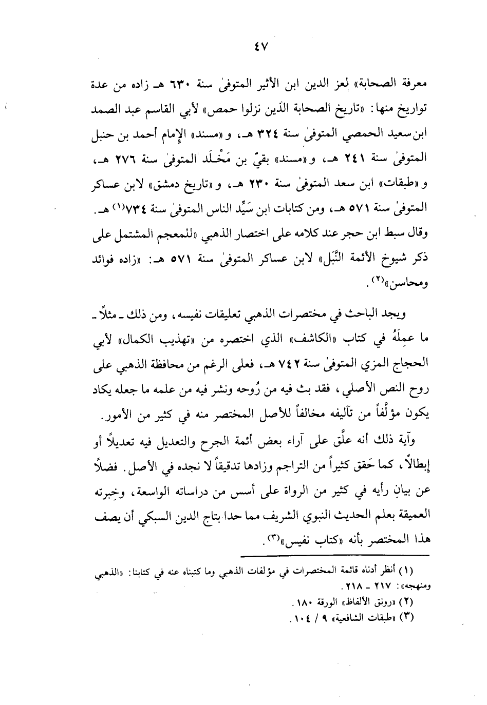 (1) أنظر أدناه قائمة المختصرات في مؤلفات الذهبي وما كتبناه عنه في كتابنا: " الذهبي ومنهجه ": 218 217.