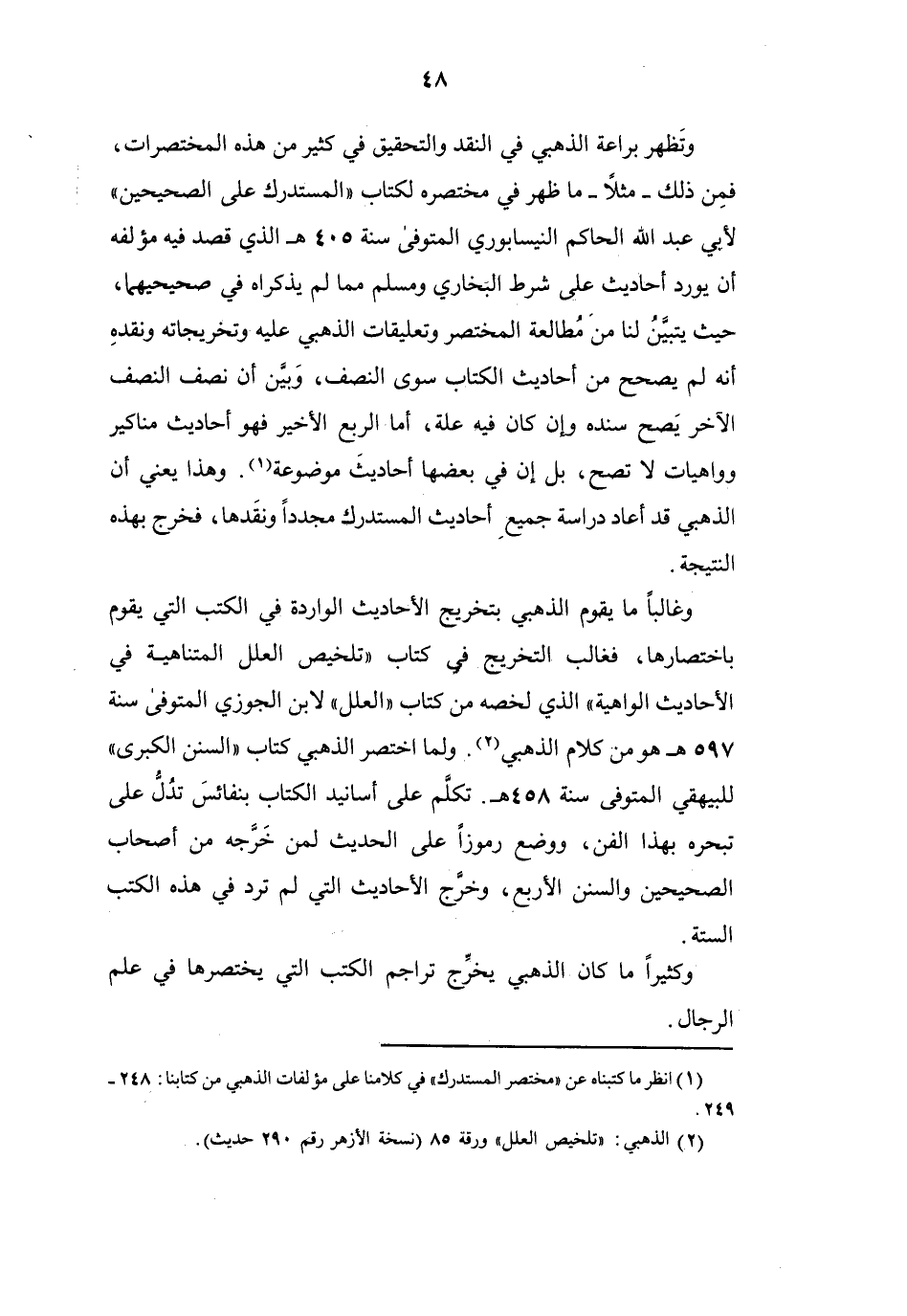 (1) انظر ما كتبناه عن " مختصر المستدرك " في كلامنا على مؤلفات الذهبي من كتابنا: 248 249.