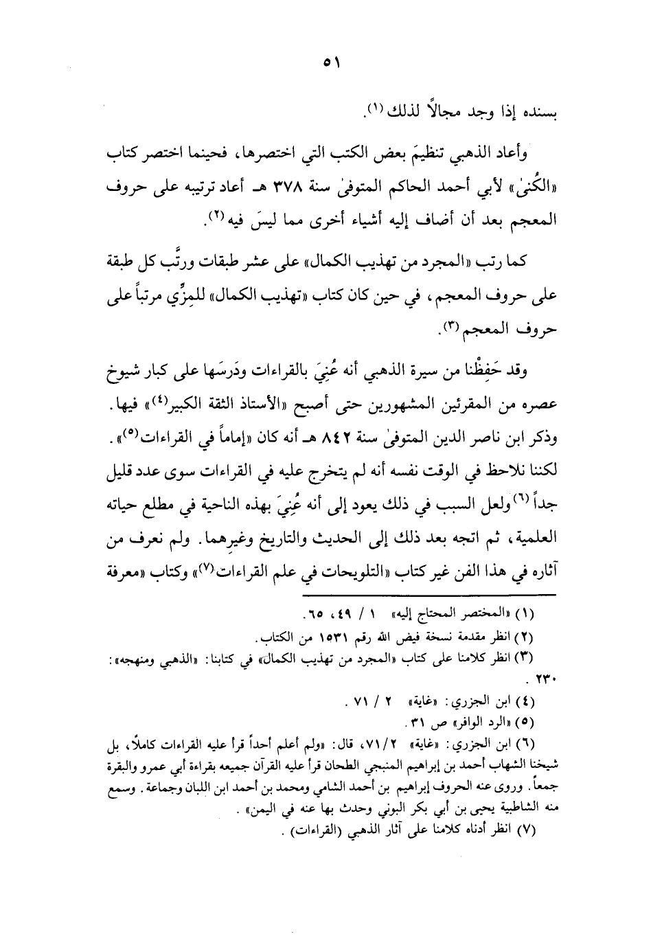 (7) انظر أدناه كلامنا على آثار الذهبي (القراءات) .