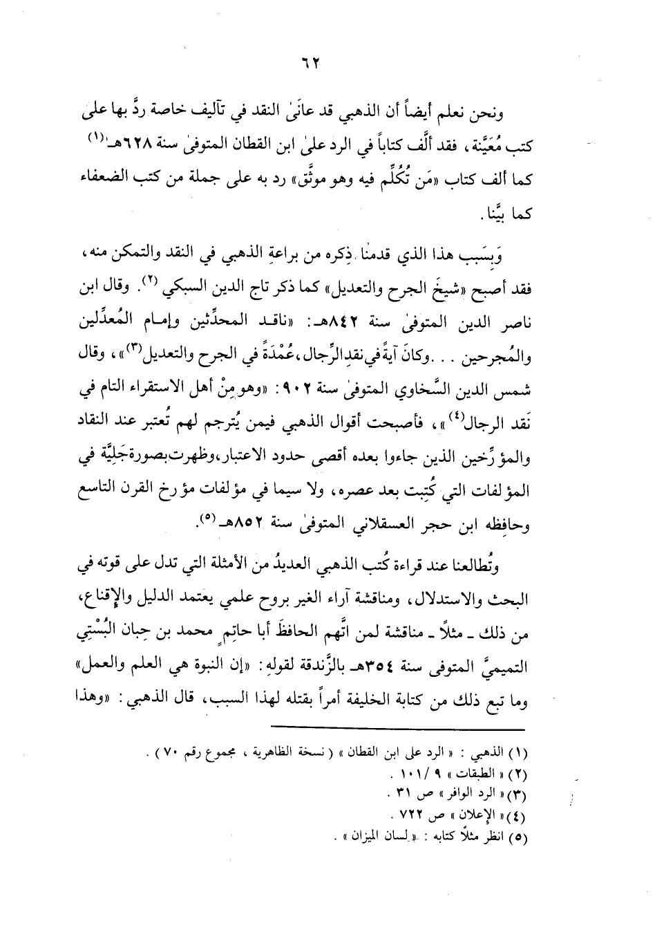 (1) الذهبي: " الرد على ابن القطان " (نسخة الظاهرية، مجموع رقم 70) .
