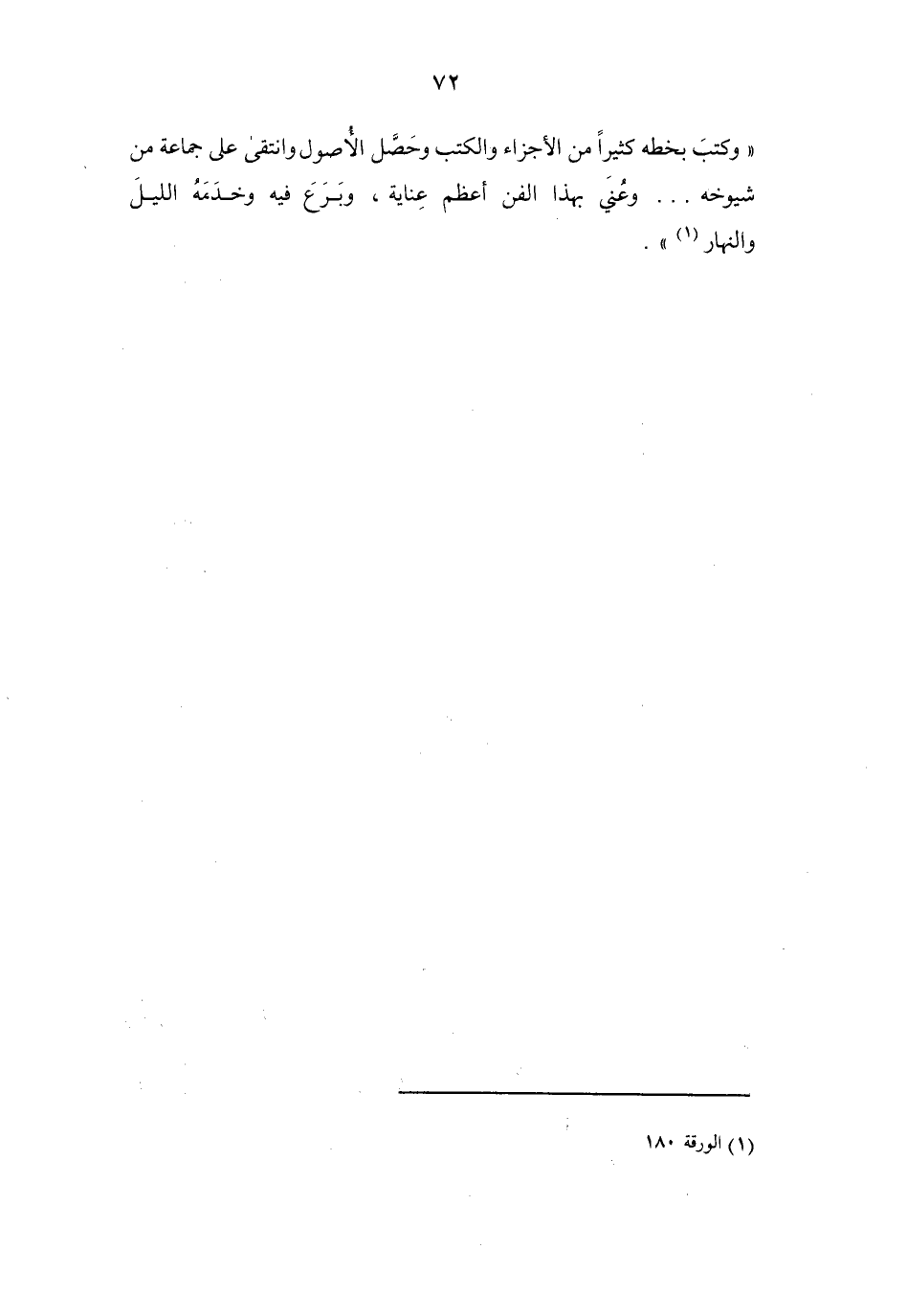 " وكتب بخطه كثيرا من الأجزاء والكتب وحصل الأصول وانتقى على جماعة من شيوخه..وعني بهذا الفن أعظم عناية، وبرع فيه وخدمه الليل والنهار (1) ".