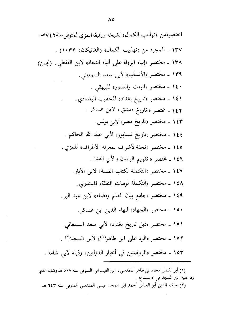 151 - مختصر " ذيل تاريخ بغداد " لأبي سعد السمعاني.