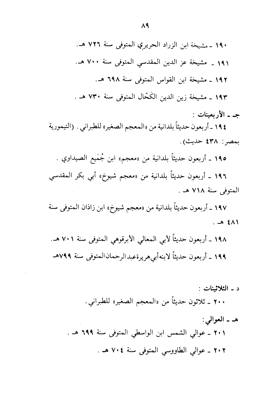 ج - الأربعينات: 194 أربعون حديثا بلدانية من " المعجم الصغير " للطبراني. (التيمورية بمصر: 438 حديث) .
