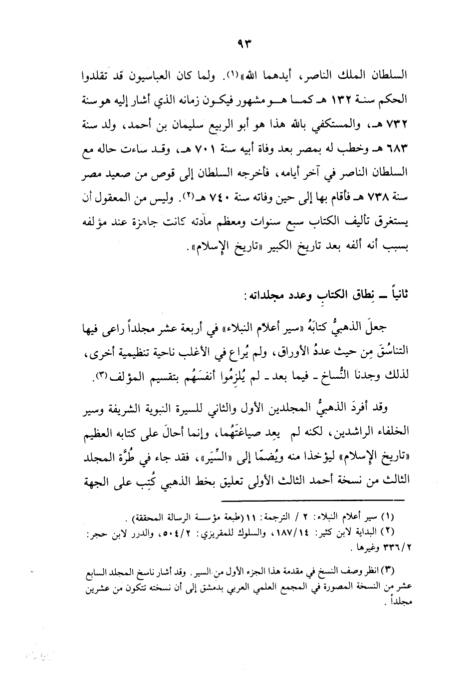 الخلفاء الراشدين، لكنه لم يعد صياغتهما، وإنما أحال على كتابه العظيم " تاريخ الإسلام " ليؤخذا منه ويضما إلى " السير " فقد جاء في طرة المجلد الثالث من نسخة أحمد الثالث الأولى تعليق بخط الذهبي كتب على الجهة