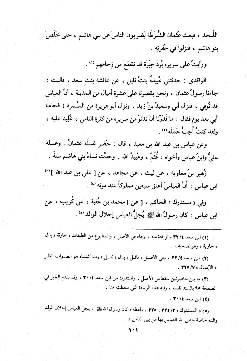 (5) " المستدرك " 3 / 324، 325، ولفظه " كان رسول الله صلى الله عليه وسلم، يجل العباس إجلال الولد والده خاصة خص الله العباس بها من بين الناس ".
