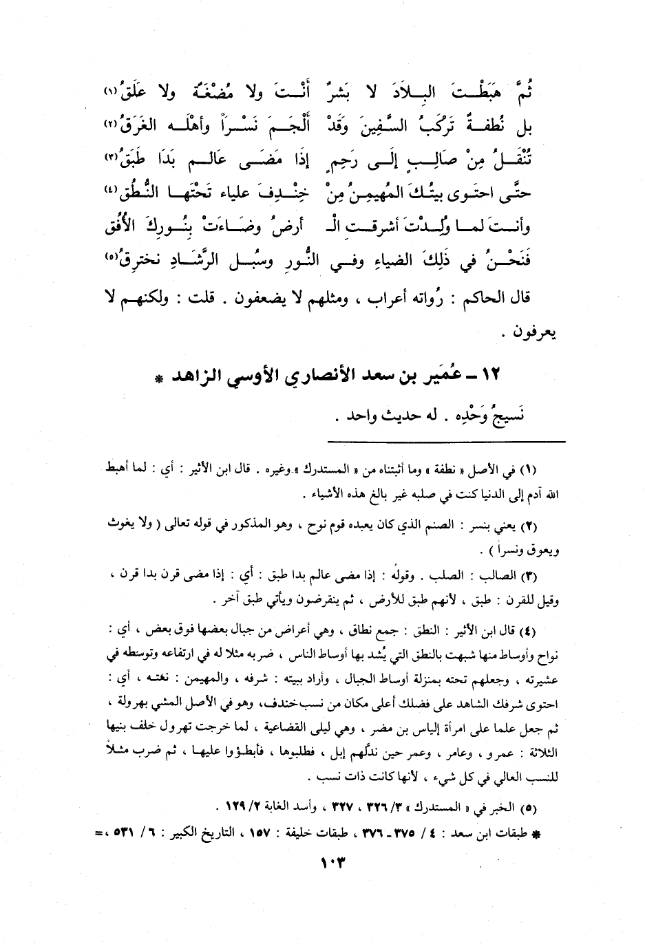 12 - عُمَيْرُ بنُ سَعْدٍ الأَنْصَارِيُّ الأَوْسِيُّ الزَّاهِدُ *