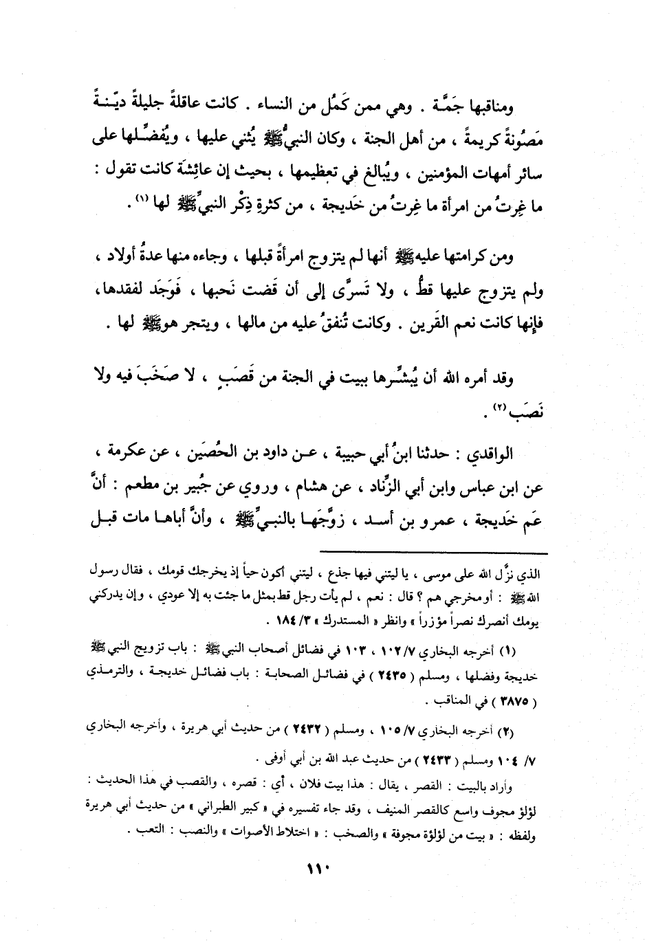 (1) أخرجه البخاري 7 / 102، 103 في فضائل أصحاب النبي صلى الله عليه وسلم: باب تزويج النبي صلى الله عليه وسلم خديجة وفضلها، ومسلم (2435) في فضائل الصحابة: باب فضائل خديجة، والترمذي (3875) في المناقب.