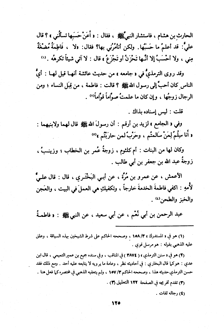 قَالَتْ: فَاطِمَةُ مِنْ قِبَلِ النِّسَاءِ؛ وَمِنَ الرِّجَالِ زَوْجُهَا، وَإِنْ كَانَ مَا عَلِمْتُ صَوَّاماً قَوَّاماً (2) .