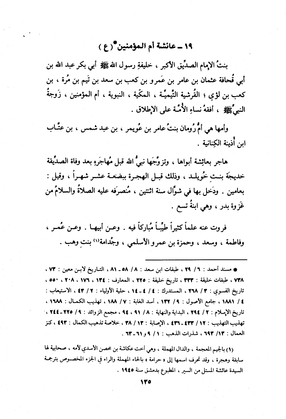 19 - عَائِشَةُ بِنْتُ الصِّدِّيْقِ أَبِي بَكْرٍ التَّيْمِيَّةُ أُمُّ المُؤْمِنِيْنَ * (ع)
