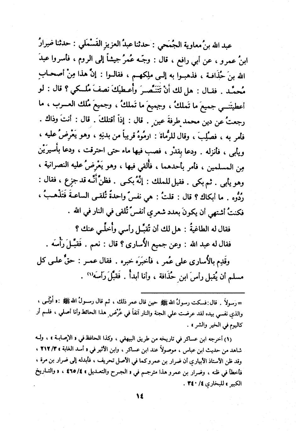 وَجَّهَ عُمَرُ جَيْشاً إِلَى الرُّوْمِ، فَأَسَرُوا عَبْدَ اللهِ بنَ حُذَافَةَ، فَذَهَبُوا بِهِ إِلَى مَلِكِهِم، فَقَالُوا: إِنَّ هَذَا مِنْ أَصْحَابِ مُحَمَّدٍ.