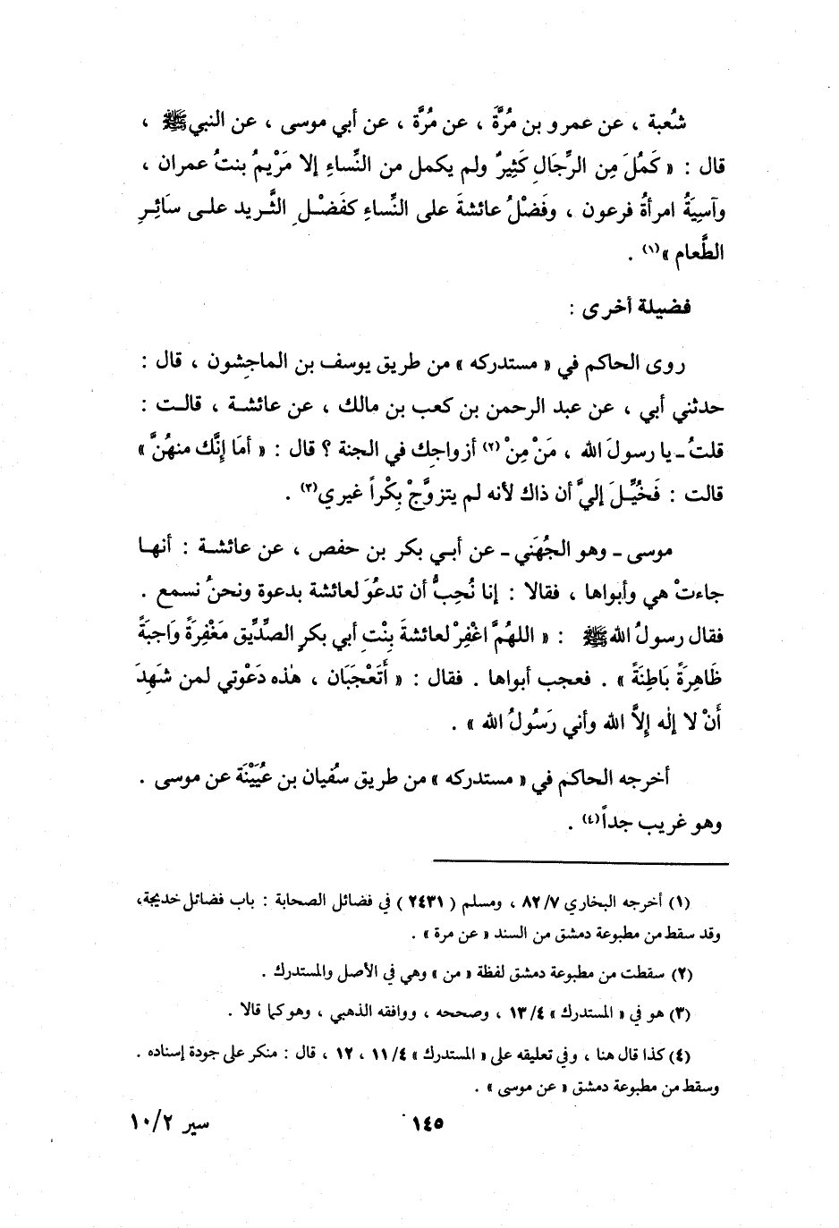 (1) أخرجه البخاري 7 / 82، ومسلم (2431) في فضائل الصحابة: باب فضائل خديجة، وقد سقط من مطبوعة دمشق من السند " عن مرة ".