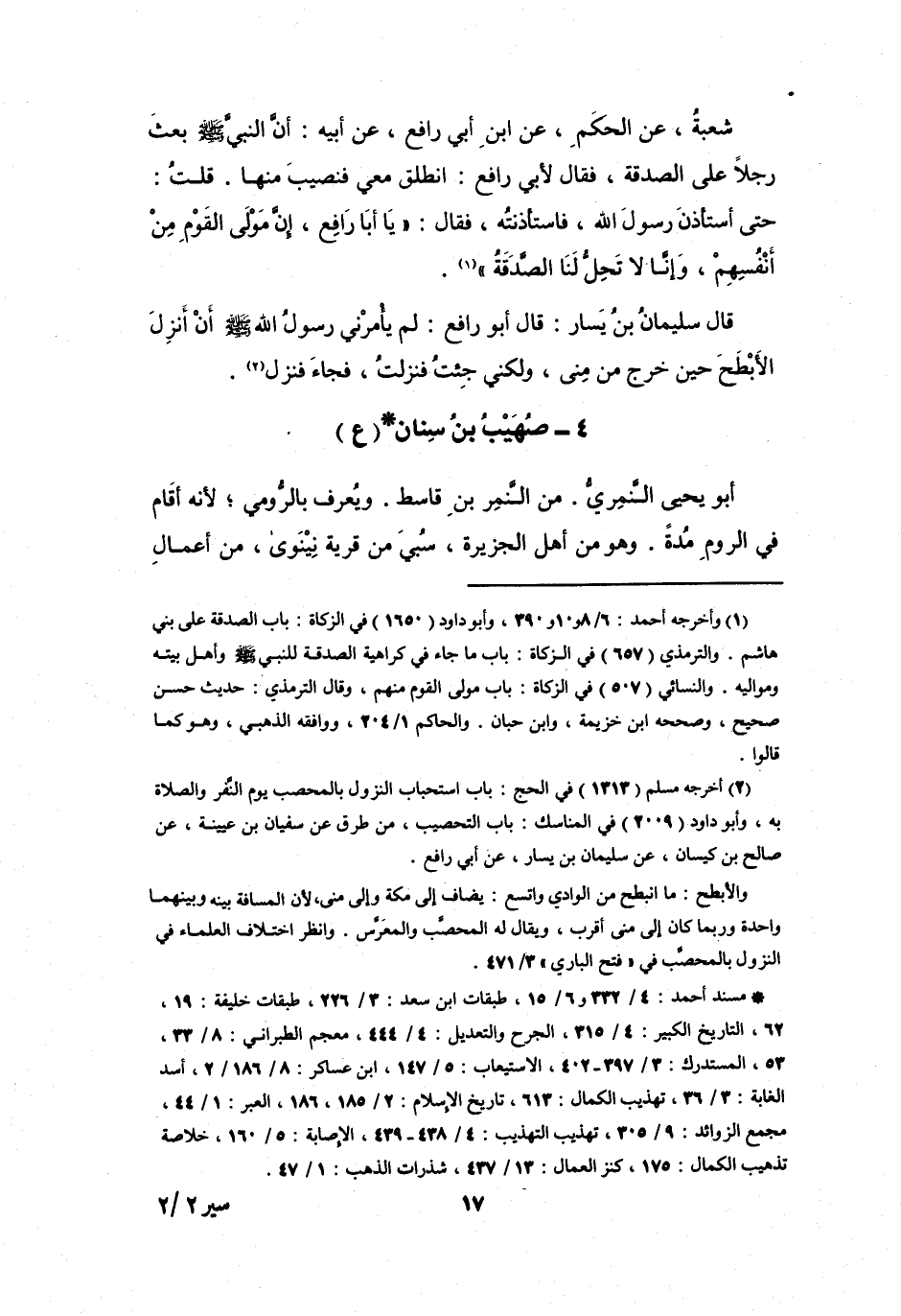 (2) أخرجه مسلم (1313) في الحج: باب استحباب النزول بالمحصب يوم النفر والصلاة به، وأبو داود (2009) في المناسك: باب التحصيب، من طرق عن سفيان بن عيينة، عن صالح بن كيسان، عن سليمان بن يسار، عن أبي رافع.