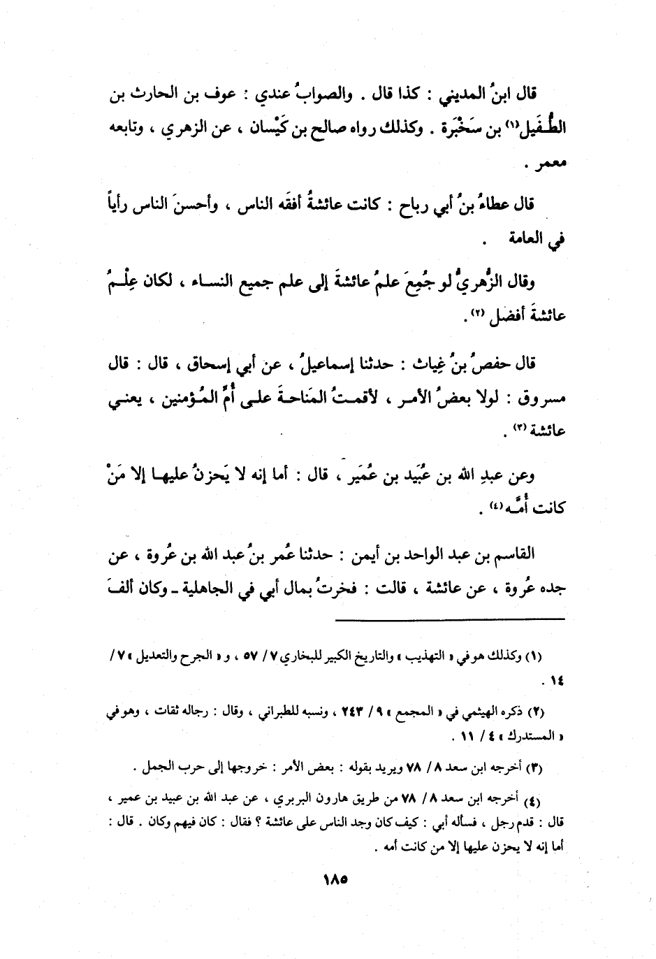 (4) أخرجه ابن سعد 8 / 78 من طريق هارون البربري، عن عبد الله بن عبيد بن عمير، قال: قدم رجل، فسأله أبي: كيف كان وجد الناس على عائشة؟ فقال: كان فيهم وكان.