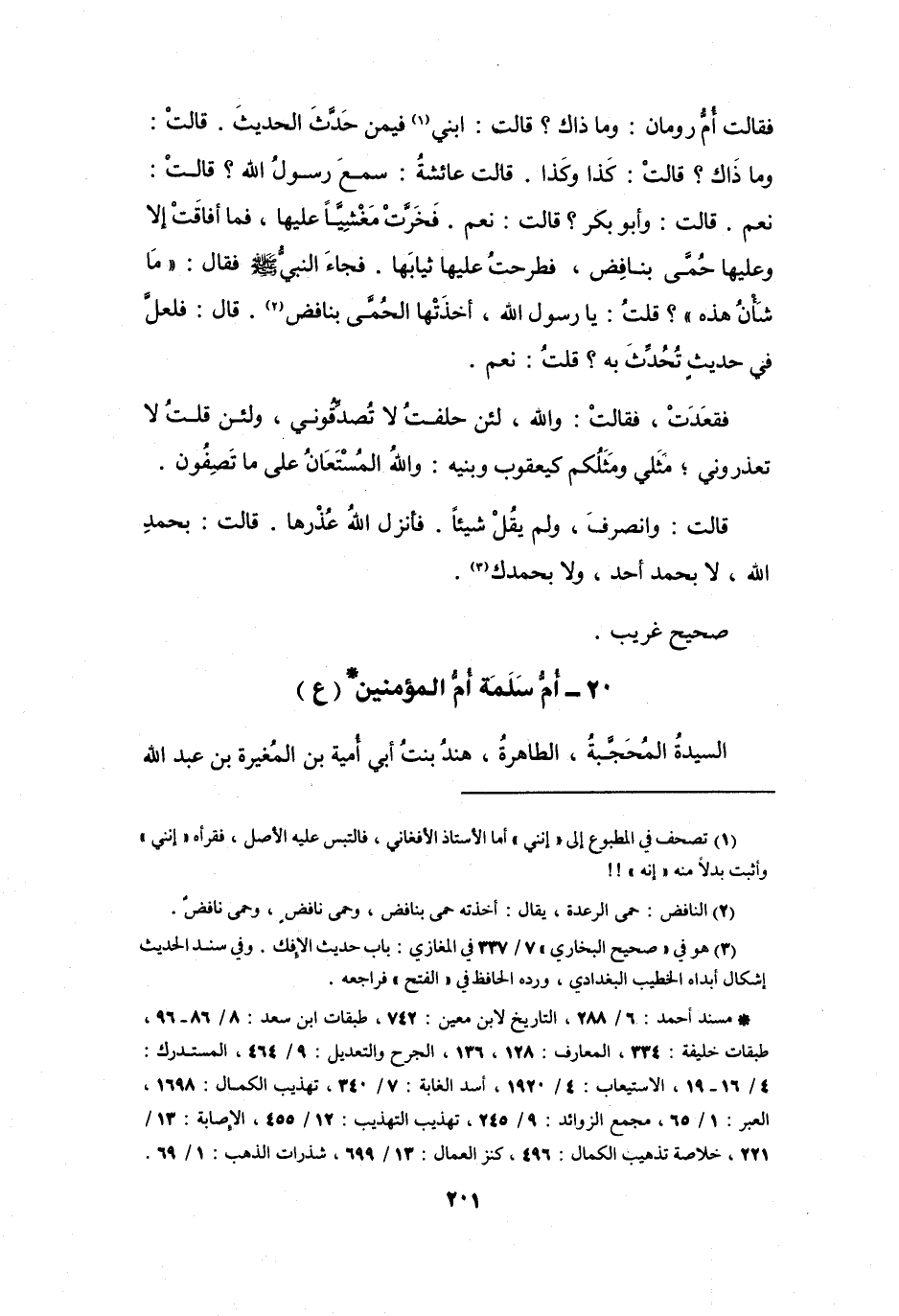 20 - أُمُّ سَلَمَةَ أُمُّ المُؤْمِنِيْنَ هِنْدُ بِنْتُ أَبِي أُمَيَّةَ المَخْزُوْمِيَّةُ * (ع)