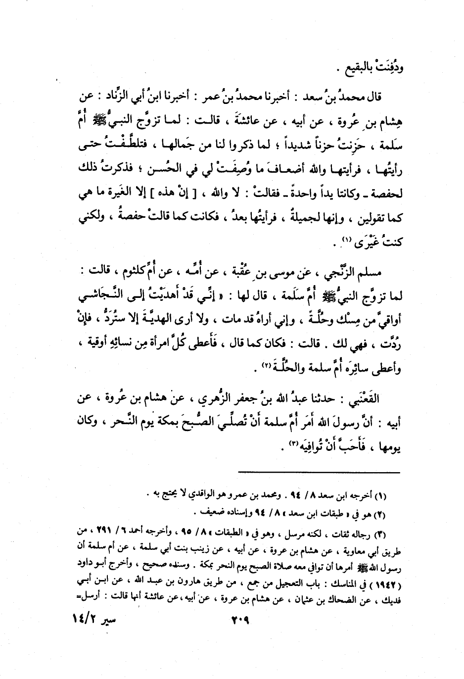 (3) رجاله ثقات، لكنه مرسل، وهو في " الطبقات " 8 / 95، وأخرجه أحمد 6 / 291، من طريق أبي معاوية، عن هشام بن عروة، عن أبيه، عن زينب بنت أبي سلمة، عن أم سلمة أن رسول الله صلى الله عليه وسلم أمرها أن توافي معه صلاة الصبح يوم النحر بمكة.