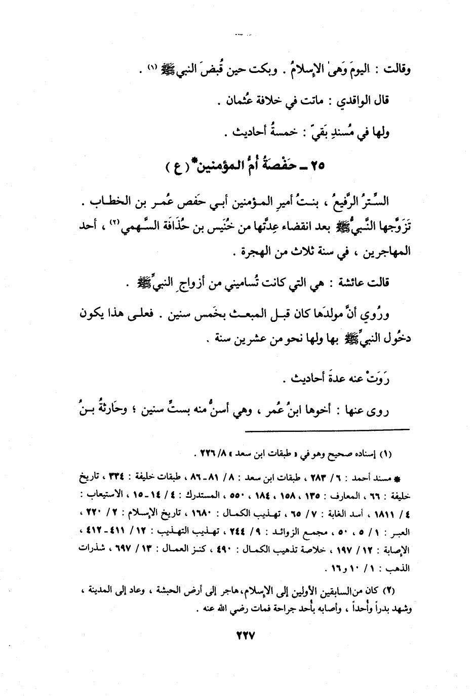 25 - حَفْصَةُ بِنْتُ عُمَرَ بنِ الخَطَّابِ العَدَوِيَّةُ أُمُّ المُؤْمِنِيْنَ * (ع)