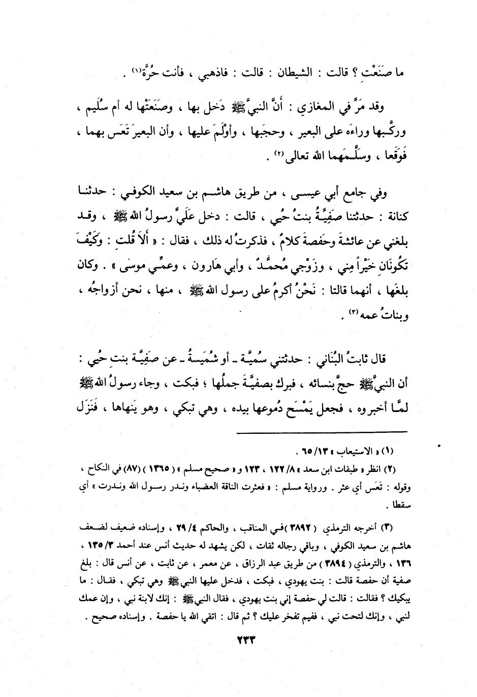 وَفِي (جَامِعِ أَبِي عِيْسَى) : مِنْ طَرِيْقِ هَاشِمِ بنِ سَعِيْدٍ الكُوْفِيِّ، حَدَّثَنَا كِنَانَةُ، حَدَّثَتْنَا صَفِيَّةُ بِنْتُ حُيَيٍّ، قَالَتْ: