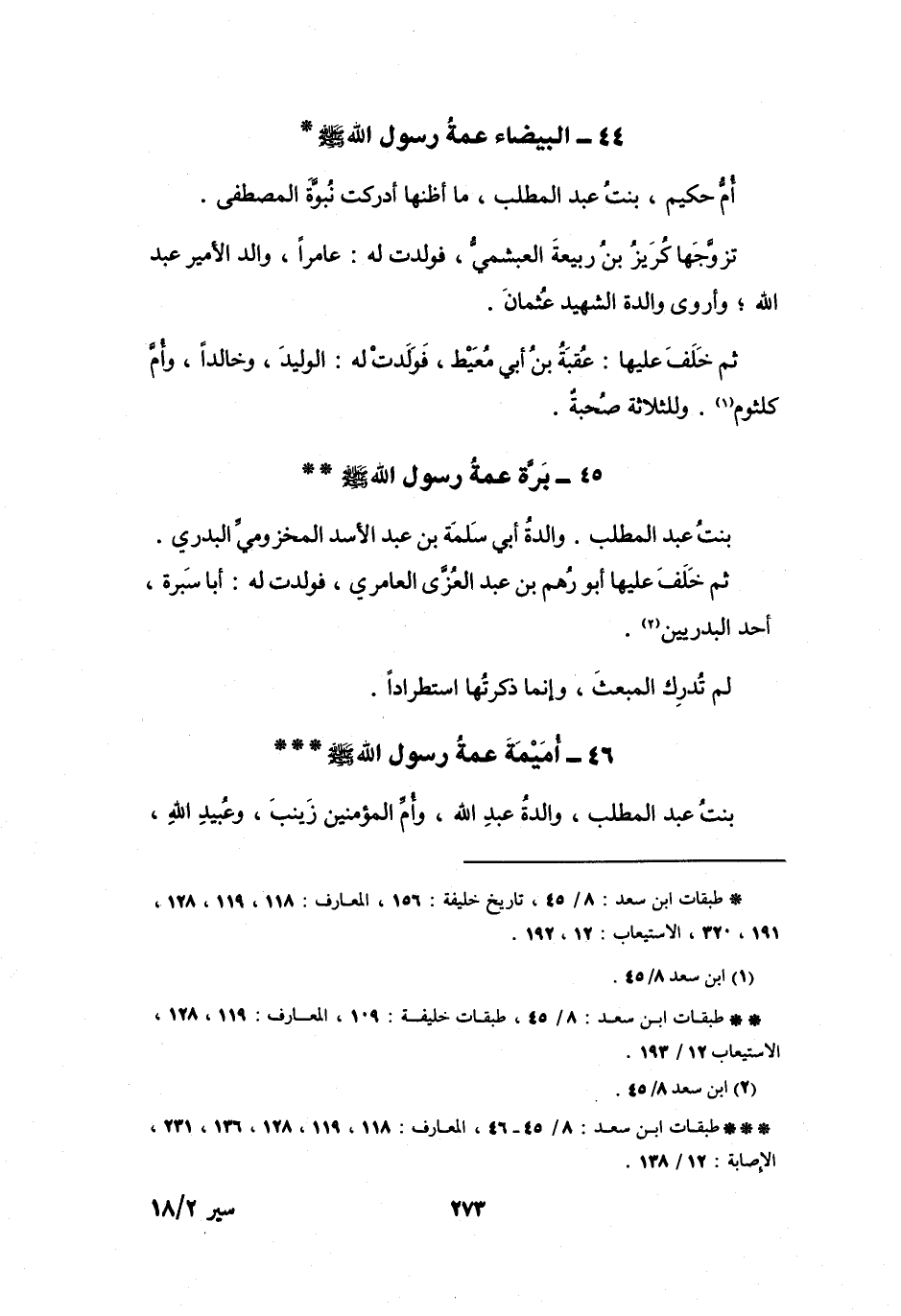 (* *) طبقات ابن سعد: 8 / 45، طبقات خليفة: 109، المعارف: 119، 128، الاستيعاب 12 / 193.