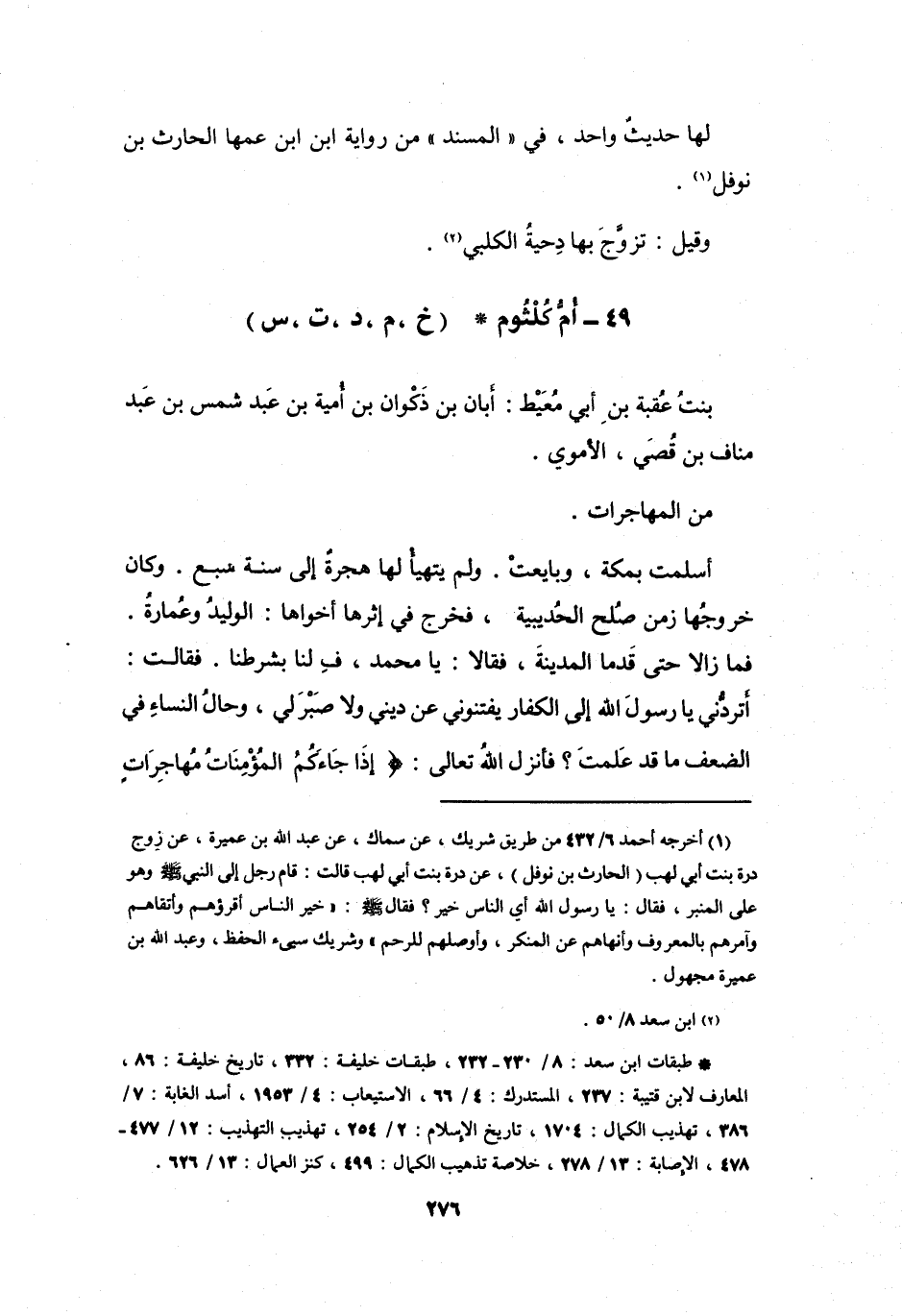 49 - أُمُّ كُلْثُوْمٍ بِنْتُ عُقْبَةَ الأُمَوِيِّةُ * (خَ، م، د، ت، س)