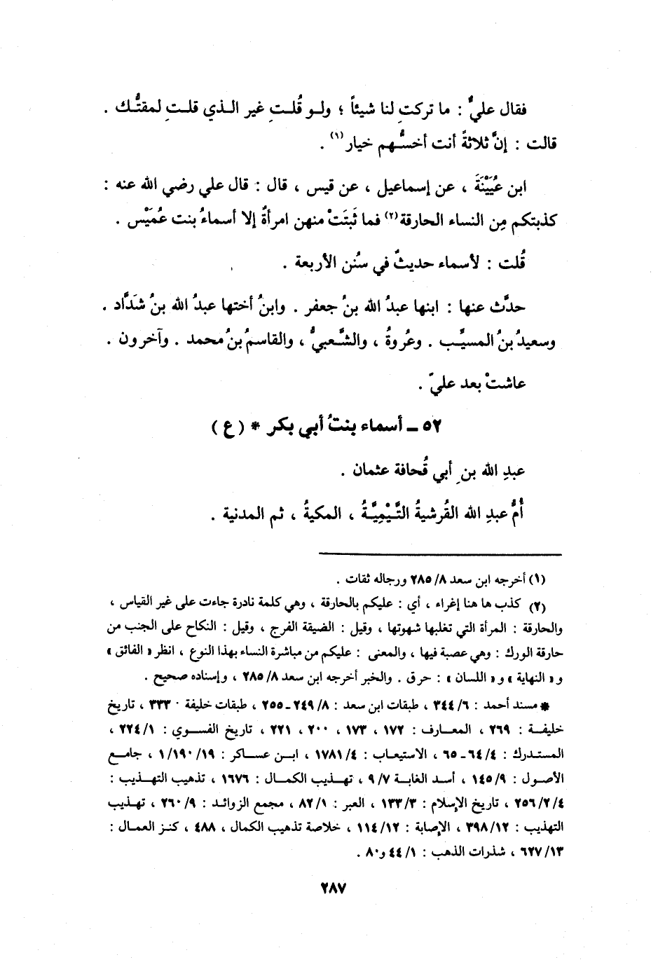 52 - أَسْمَاءُ بِنْتُ أَبِي بَكْرٍ عَبْدِ اللهِ بنِ أَبِي قُحَافَةَ عُثْمَانَ التَّيْمِيَّةُ * (ع)
