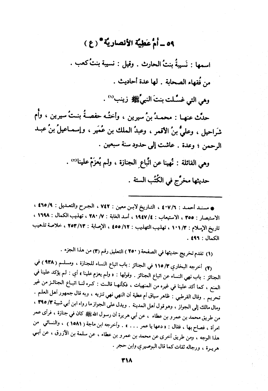 59 - أُمُّ عَطِيَّةَ الأَنْصَارِيَّةُ نَسِيْبَةُ بِنْتُ الحَارِثِ * (ع)