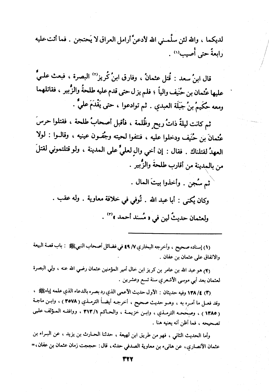 وَلِعُثْمَانَ حَدِيْثٌ لَيِّنٌ فِي (مُسْنَدِ أَحْمَدَ) (3) .
