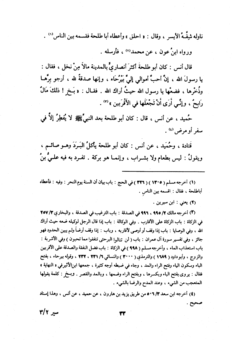 والزوج، وأبو داود (1689) والترمذي (3000) والنسائي 6 / 231، 232، وقوله بيرحاء، بفتح الباء وسكون الياء وفتح الراء والمد، وجاء في ضبطه أوجه كثيرة، جمعها ابن الأثير في النهاية فقال: يروى بفتح الباء وبكسرها، وبفتح الراء وضمها، وبالمد والقصر.