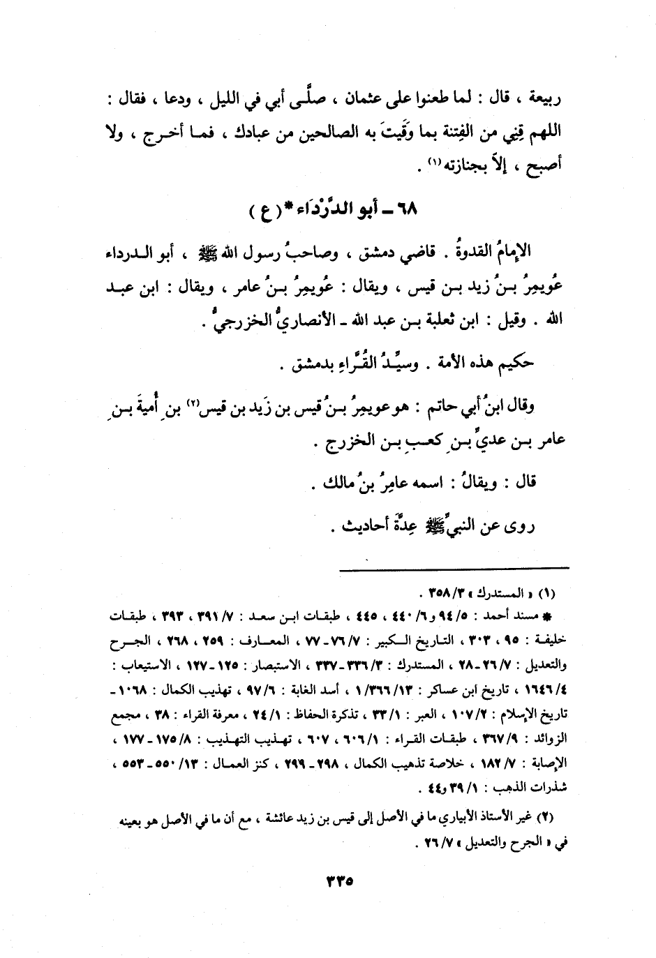 68 - أَبُو الدَّرْدَاءِ عُوَيْمِرُ بنُ زَيْدِ بنِ قَيْسٍ الأَنْصَارِيُّ * (ع)