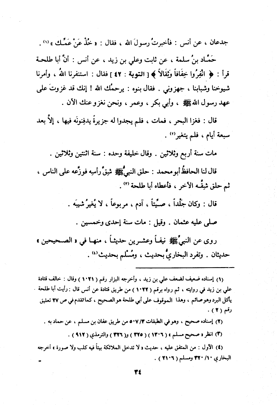 قَالَ لَنَا الحَافِظُ أَبُو مُحَمَّدٍ: حَلَقَ النَّبِيُّ -صَلَّى اللَّهُ عَلَيْهِ وَسَلَّمَ- شِقَّ رَأْسِهِ، فَوَزَّعَهُ عَلَى النَّاسِ، ثُمَّ حَلَقَ شِقَّهُ الآخَرَ، فَأَعْطَاهُ أَبَا طَلْحَةَ (3) .