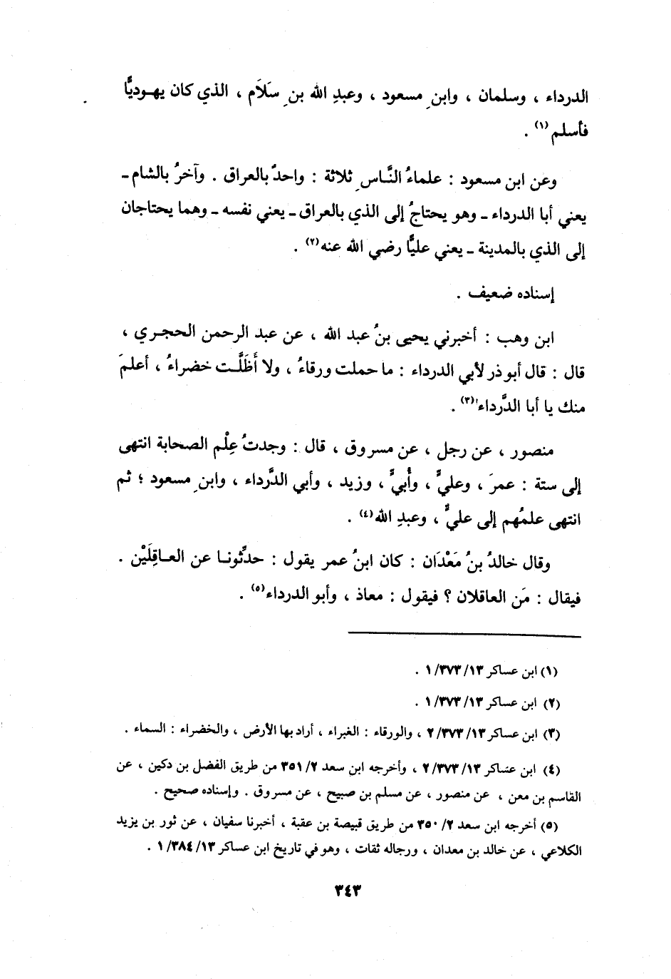 الدَّرْدَاءِ، وَسَلْمَانَ، وَابْنِ مَسْعُوْدٍ، وَعَبْدِ اللهِ بنِ سَلاَمٍ الَّذِي كَانَ يَهُودِيّاً فَأَسْلَمَ (1) .
