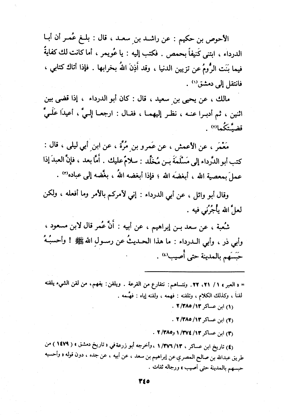 (4) تاريخ ابن عساكر، 13 / 376 / 1، وأخرجه أبو زرعة في " تاريخ دمشق " (1479) من طريق عبد الله بن صالح المصري عن إبراهيم بن سعد، عن أبيه، عن جده، دون قوله " وأحسبه حبسهم بالمدينة حتى أصيب " ورجاله ثقات.