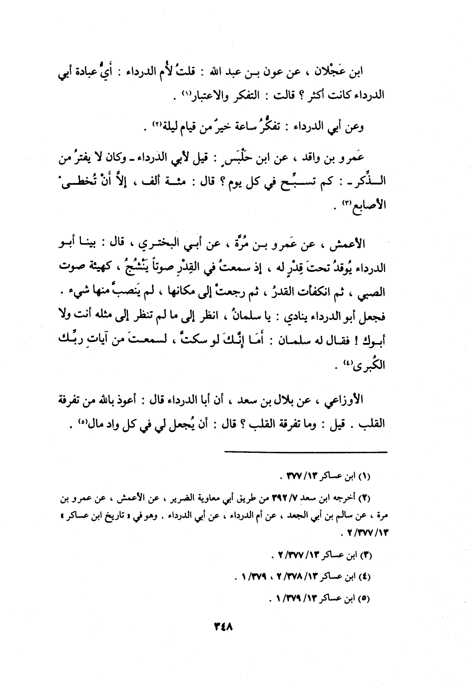 (2) أخرجه ابن سعد 7 / 392 من طريق أبي معاوية الضرير، عن الأعمش، عن عمرو بن مرة، عن سالم بن أبي الجعد، عن أم الدرداء، عن أبي الدرداء.