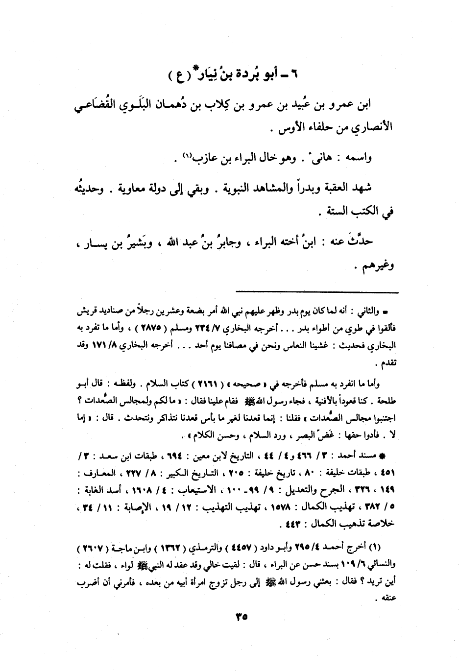 6 - أَبُو بُرْدَةَ بنُ نِيَارِ بنِ عَمْرِو بنِ عُبَيْدٍ البَلَوِيُّ * (ع)