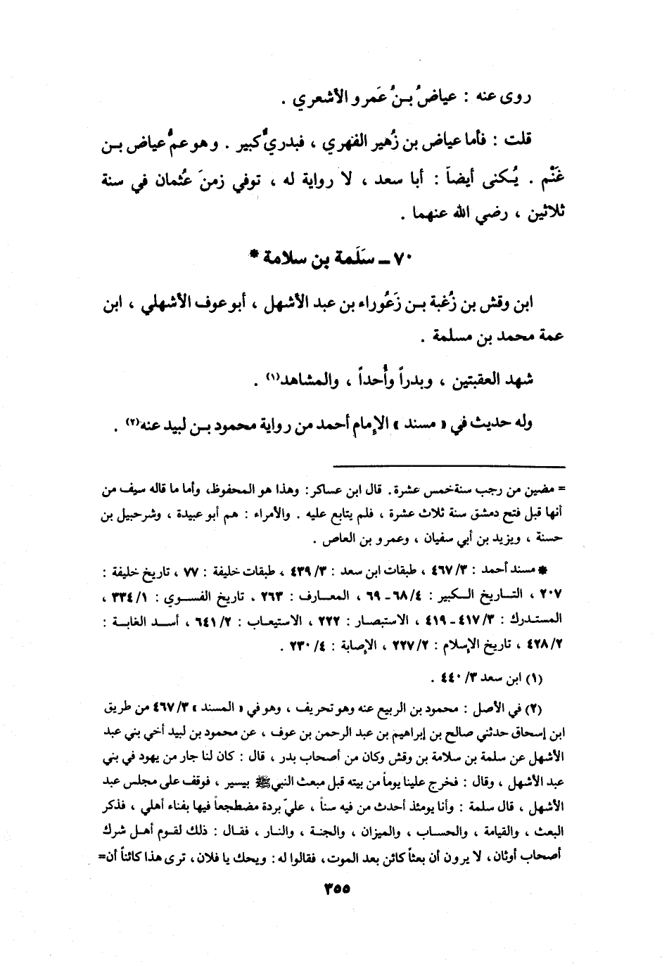 70 - سَلَمَةُ بنُ سَلاَمَةَ بنِ وَقْشِ بنِ زُغْبَةَ الأَشْهَلِيُّ *