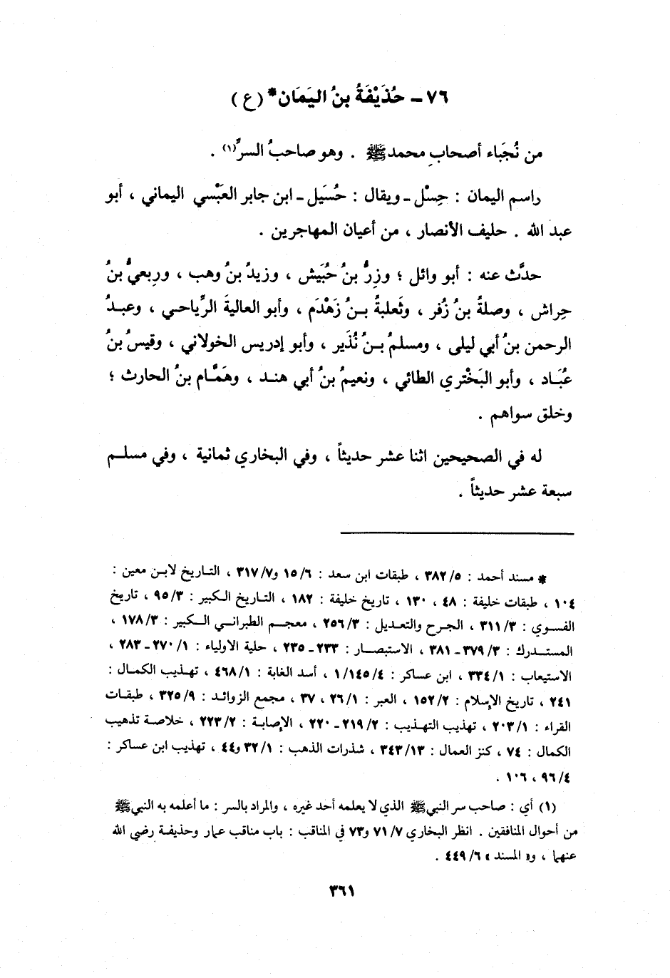 مِنْ نُجَبَاءِ أَصْحَابِ مُحَمَّدٍ -صَلَّى اللَّهُ عَلَيْهِ وَسَلَّمَ- وَهُوَ صَاحِبُ السِّرِّ (1) .