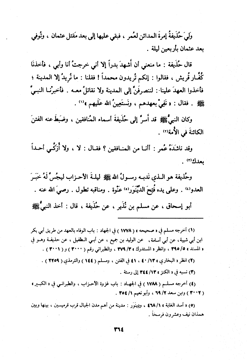 وَكَانَ النَّبِيُّ -صَلَّى اللَّهُ عَلَيْهِ وَسَلَّمَ- قَدْ أَسَرَّ إِلَى حُذَيْفَةَ أَسْمَاءَ المُنَافِقِيْنَ، وَضَبَطَ عَنْهُ الفِتَنَ الكَائِنَةَ فِي الأُمَّةِ (2) .