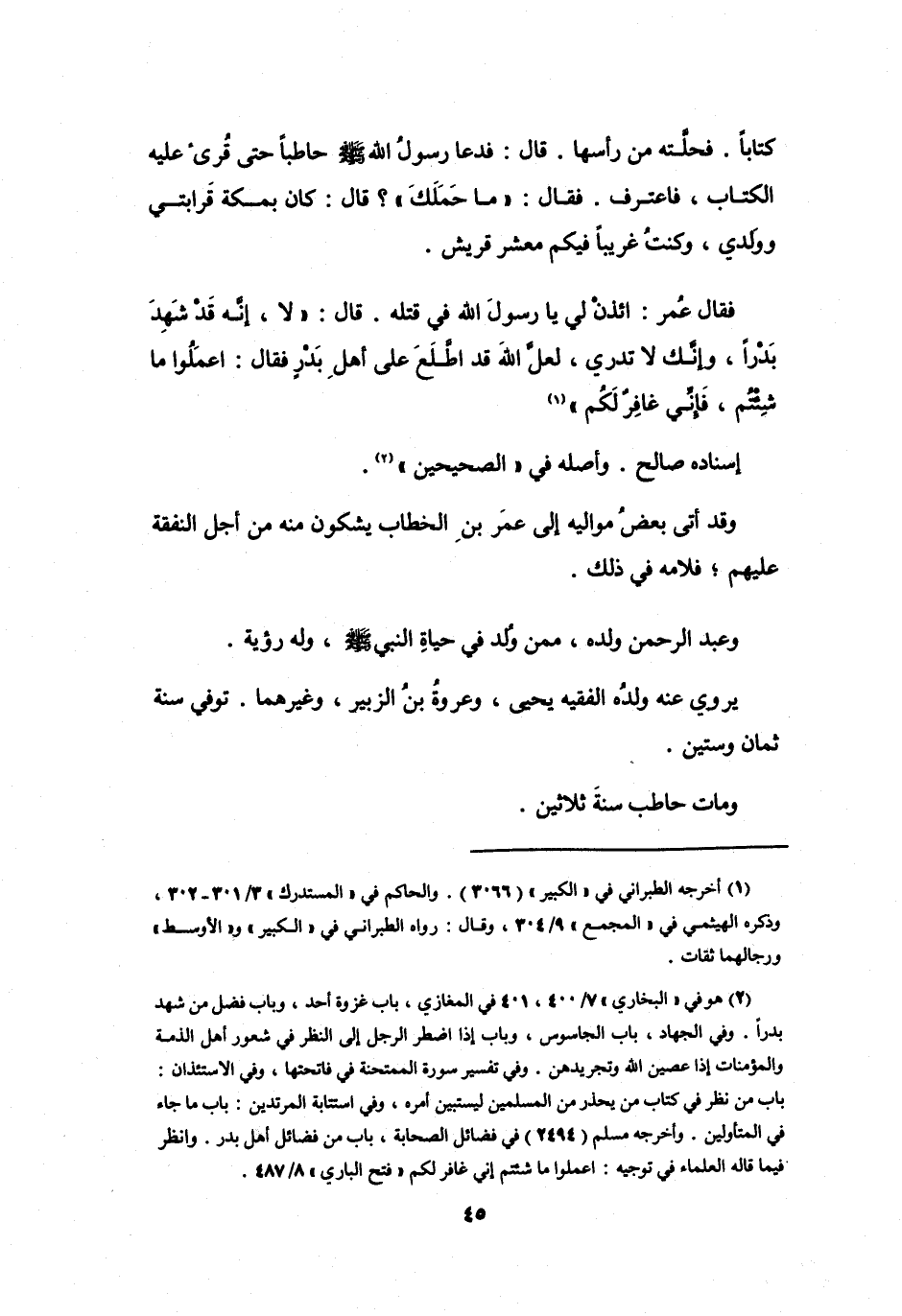 (2) هو في " البخاري " 7 / 400، 401 في المغازي، باب غزوة أحد، وباب فضل من شهد بدرا.