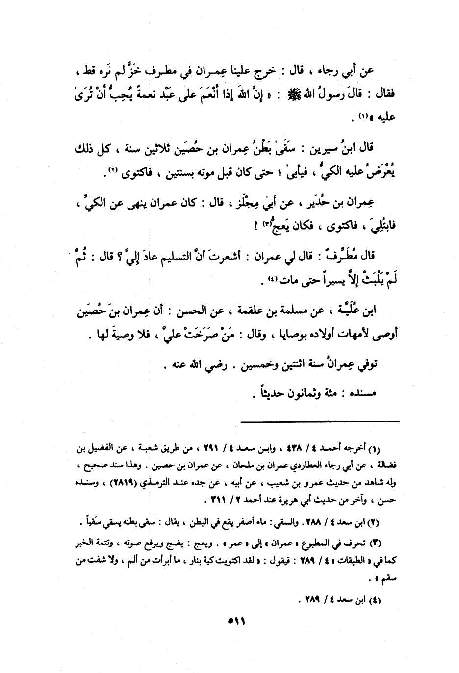 (1) أخرجه أحمد 4 / 438، وابن سعد 4 / 291، من طريق شعبة، عن الفضيل بن فضالة، عن أبي رجاء العطاردي عمران بن ملحان، عن عمران بن حصين.