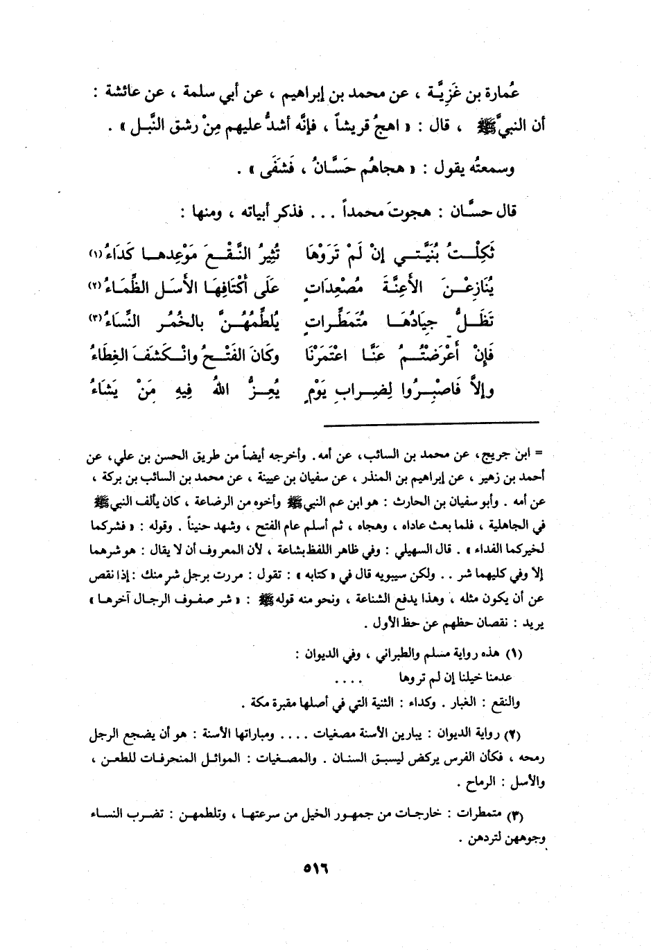 قَالَ حَسَّانٌ: هَجَوْتَ مُحَمَّداً ... ، فَذَكَرَ أَبْيَاتَهُ، وَمِنْهَا: