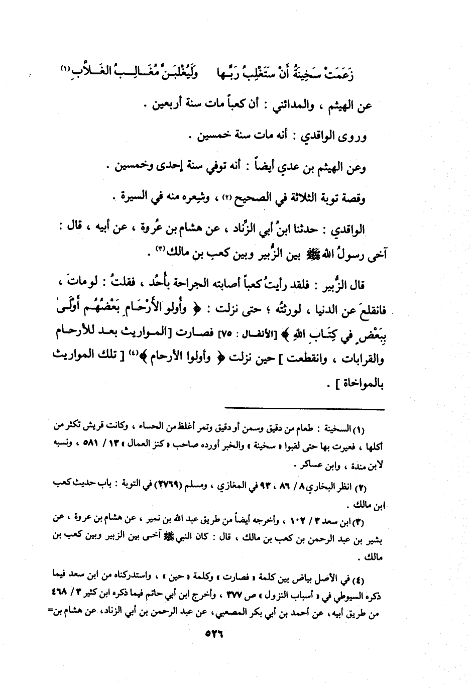 آخَى رَسُوْلُ اللهِ -صَلَّى اللَّهُ عَلَيْهِ وَسَلَّمَ- بَيْنَ الزُّبَيْرِ وَبَيْنَ كَعْبِ بنِ مَالِكٍ (3) .