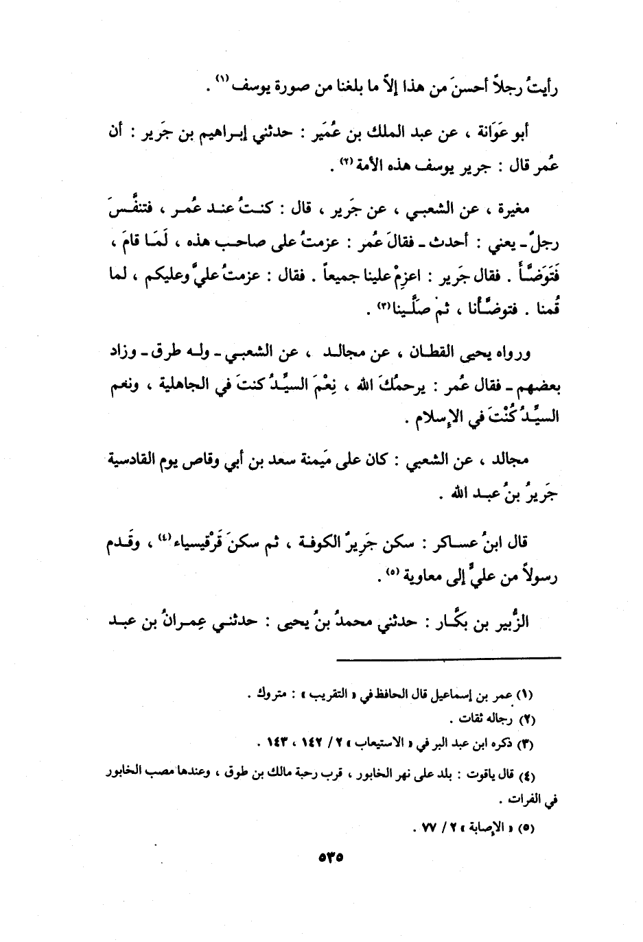 أَنَّ عُمَرَ، قَالَ: جَرِيْرٌ يُوْسُفُ هَذِهِ الأُمَّةِ (2) .